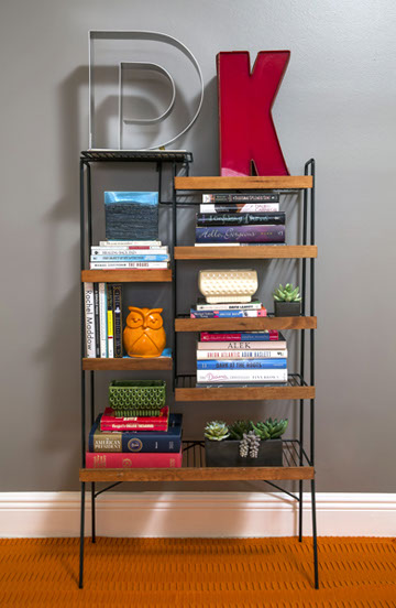 This wrought iron and wood vintage plant stand works perfectly re-purposed as a bookcase. Make sure to mix in plants and some whimsical and colorful accessories in addition to the books for a functional yet fun piece of furniture.